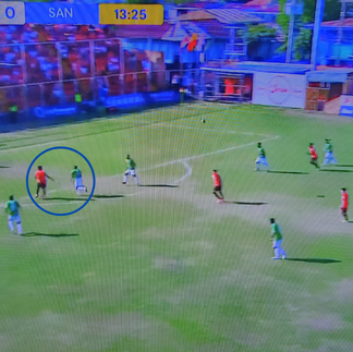 (Primeras dos imágenes) 1-0 de PFC. El defensa santista recuperó el balón, lo lanzó mal y se quedó parado lamentándose mientras su propio compañero le pedía volver a su posición. Puntarenas aprovechó y Castrillo pivoteó para el gol de Sansores. Pueden ver la jugada acá. (Tercera imagen) Ese balón literalmente viene desde los pies de Moreira y Sansores, con solo ganar de cabeza, dejó a Castrillo solo frente al marco. La jugada acá.